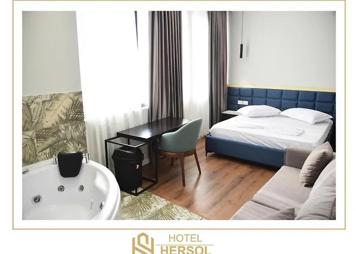 Localizado a aproximadamente 20 minutes a pé da Vila e Ahmet Zogut, o Hotel Hersol oferece 8 quartos com vistas para a cidade. Este hotel está localizado a uma pequena distância de Fatih Mosque, e providencia jacuzzi e banheira quente aos hóspedes.